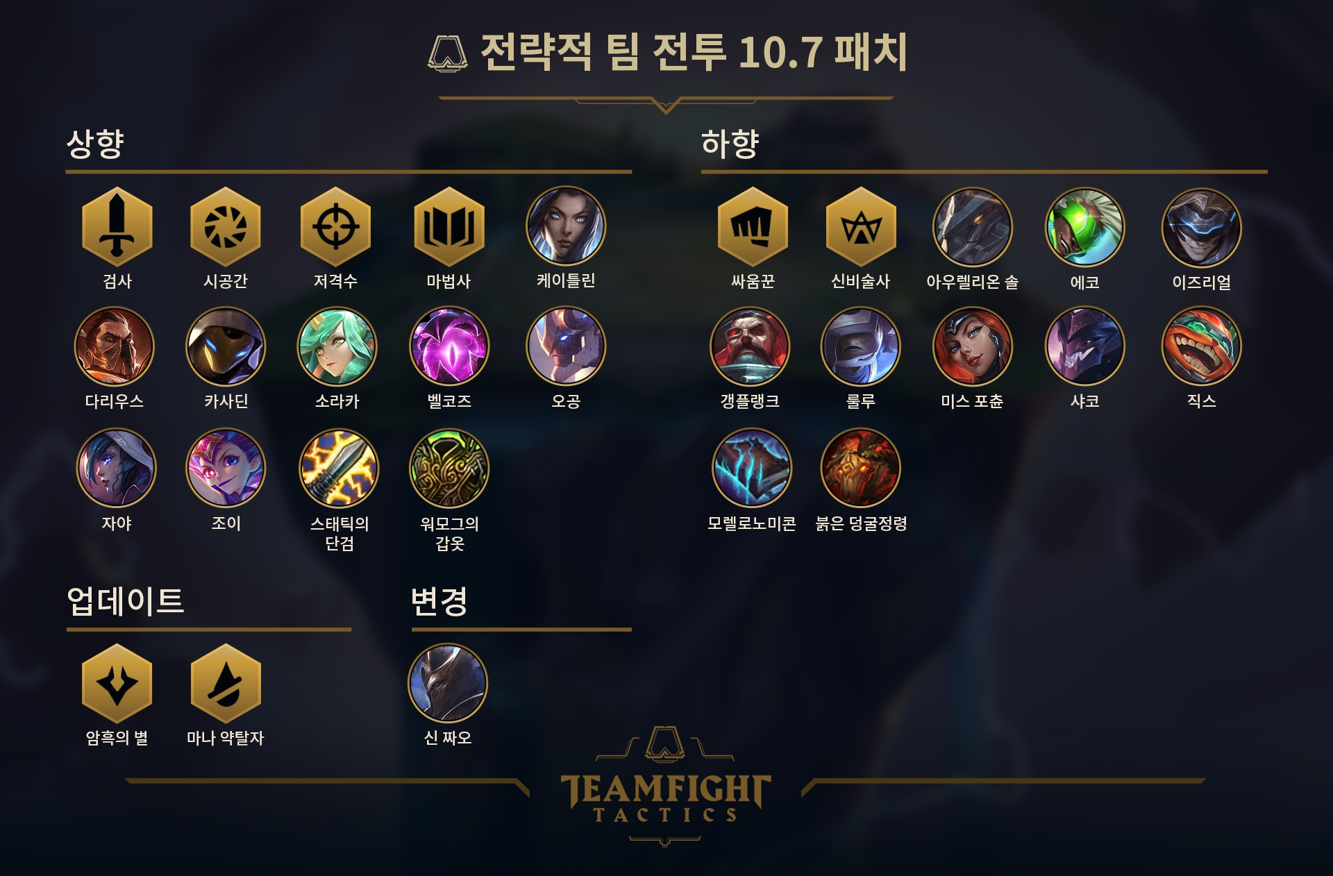 [20.4.1] 전략적 팀 전투 10.7 패치가 일어났습니다.