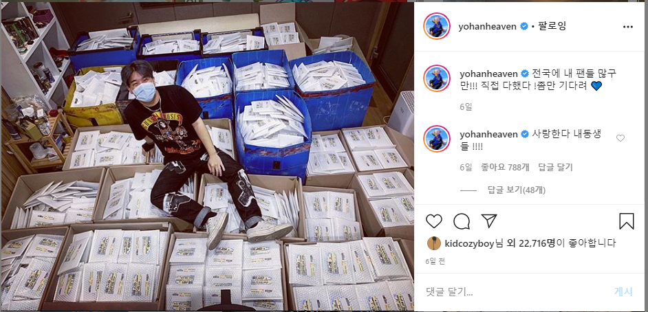 사이트에서 요한이 형이 직접 사인을 해주고