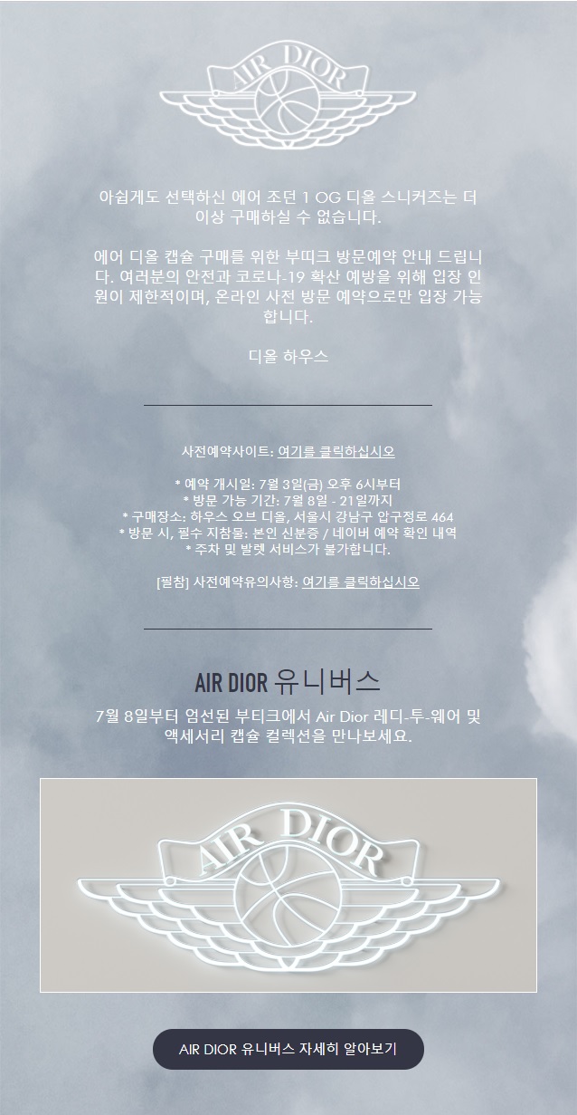 디올 조던(에어 디올) 응모 및 디올 부띠끄 방문 예약 방법, 광탈 후기 [20.7.7] 본문