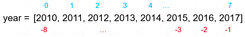 º 예) year[:8]: 리스트의 처음부터 7 까지 위치한 요소들을 추출