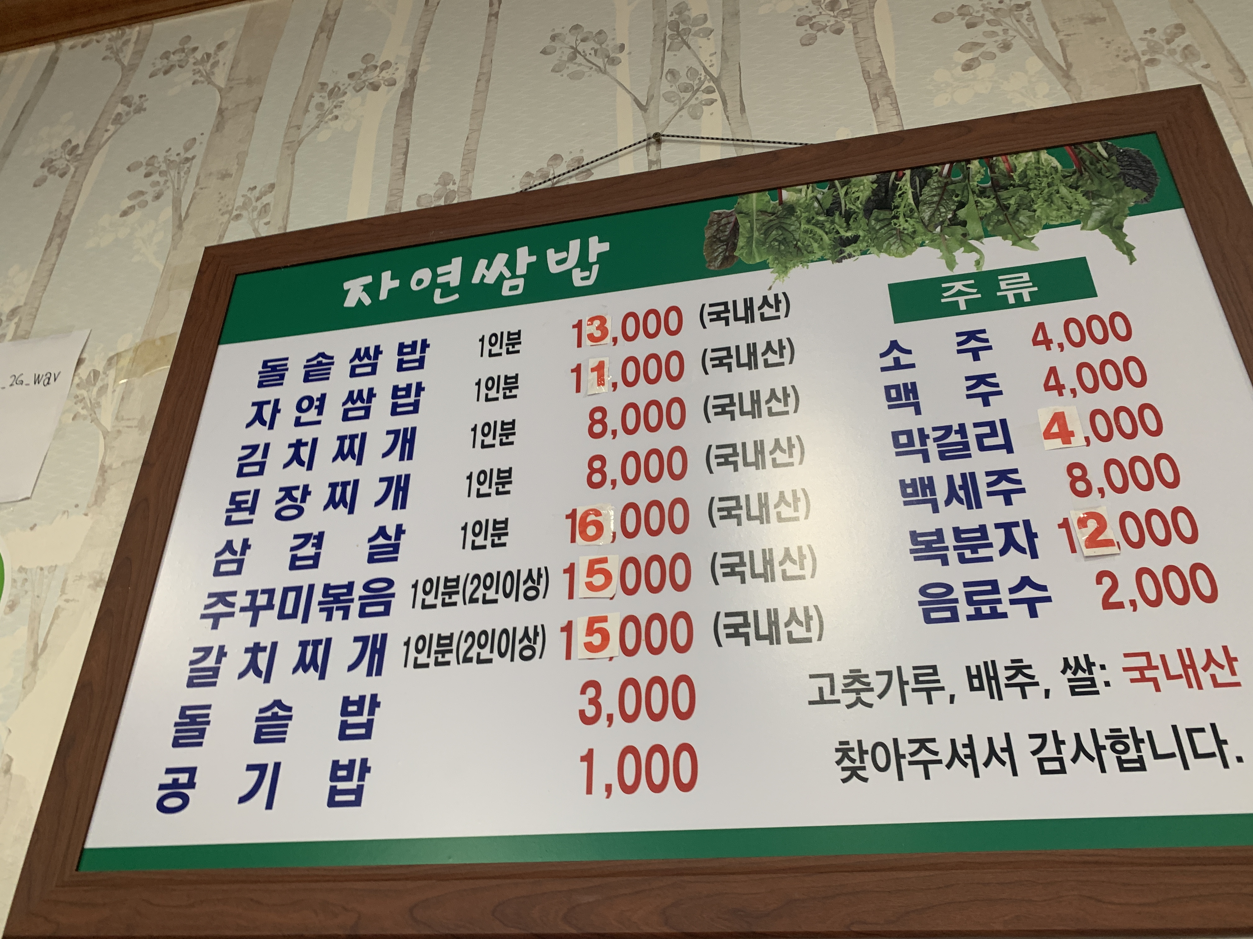 기차역 주변에 있는 식당을 찾다 자연쌈밥식당에 방문했다.