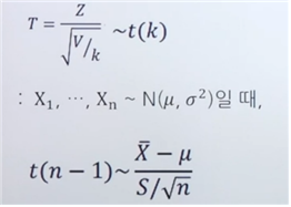 : Z ~ N(0, 1), V ~ χ²(k)(=카이제곱 분포를 따르는 V)이고 Z와 V는 서로 독립일 때,