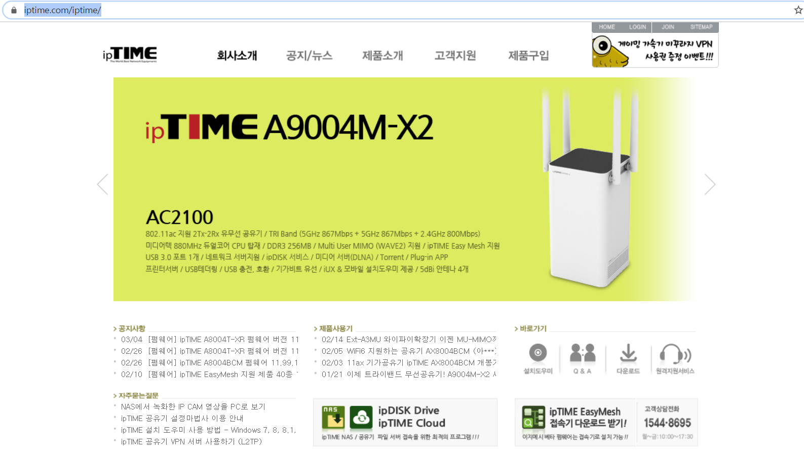 일단 Iptime 홈페이지를 접속합니다.