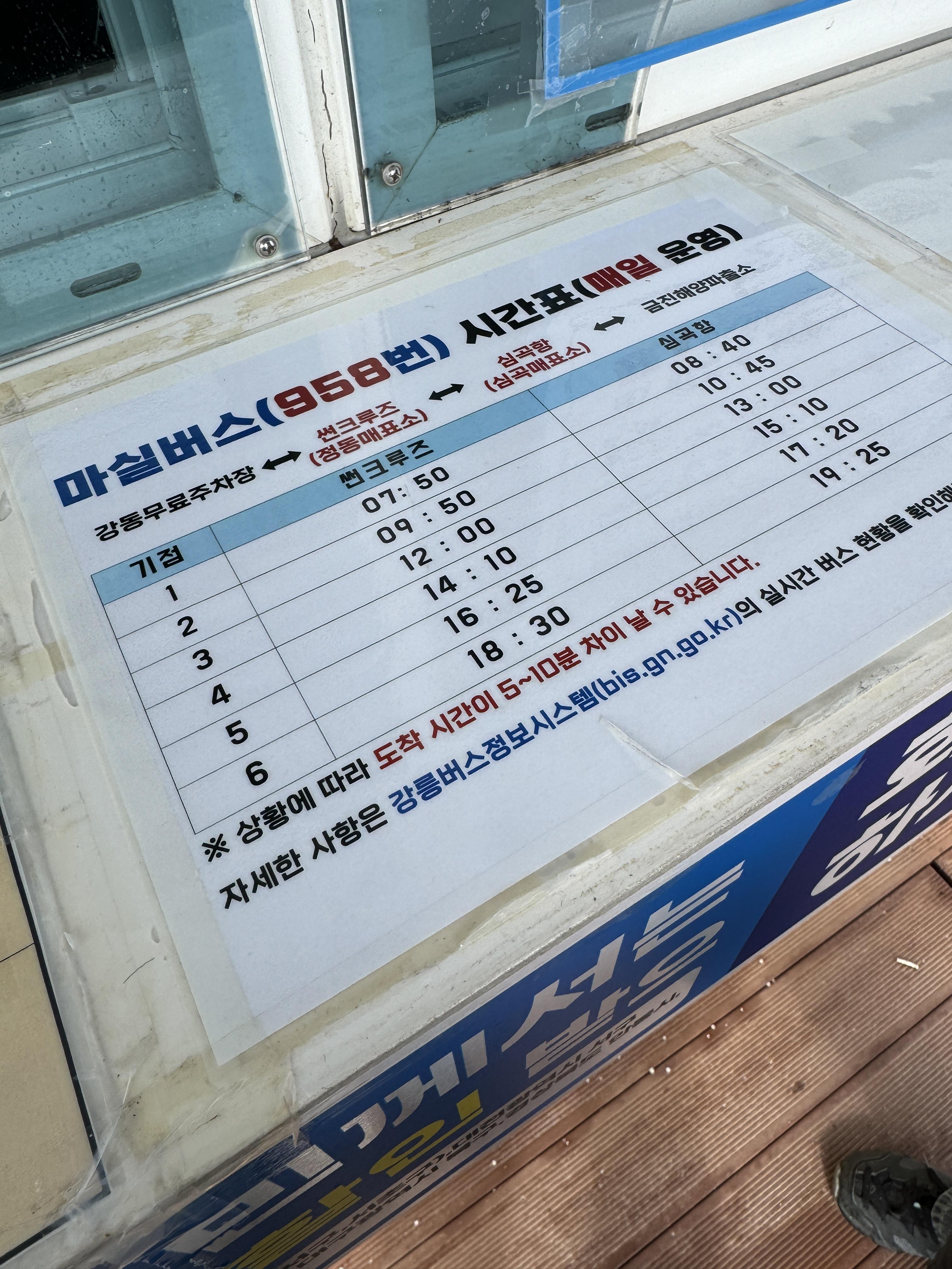 다음과 같은 버스 시간을 미리 확인했습니다.