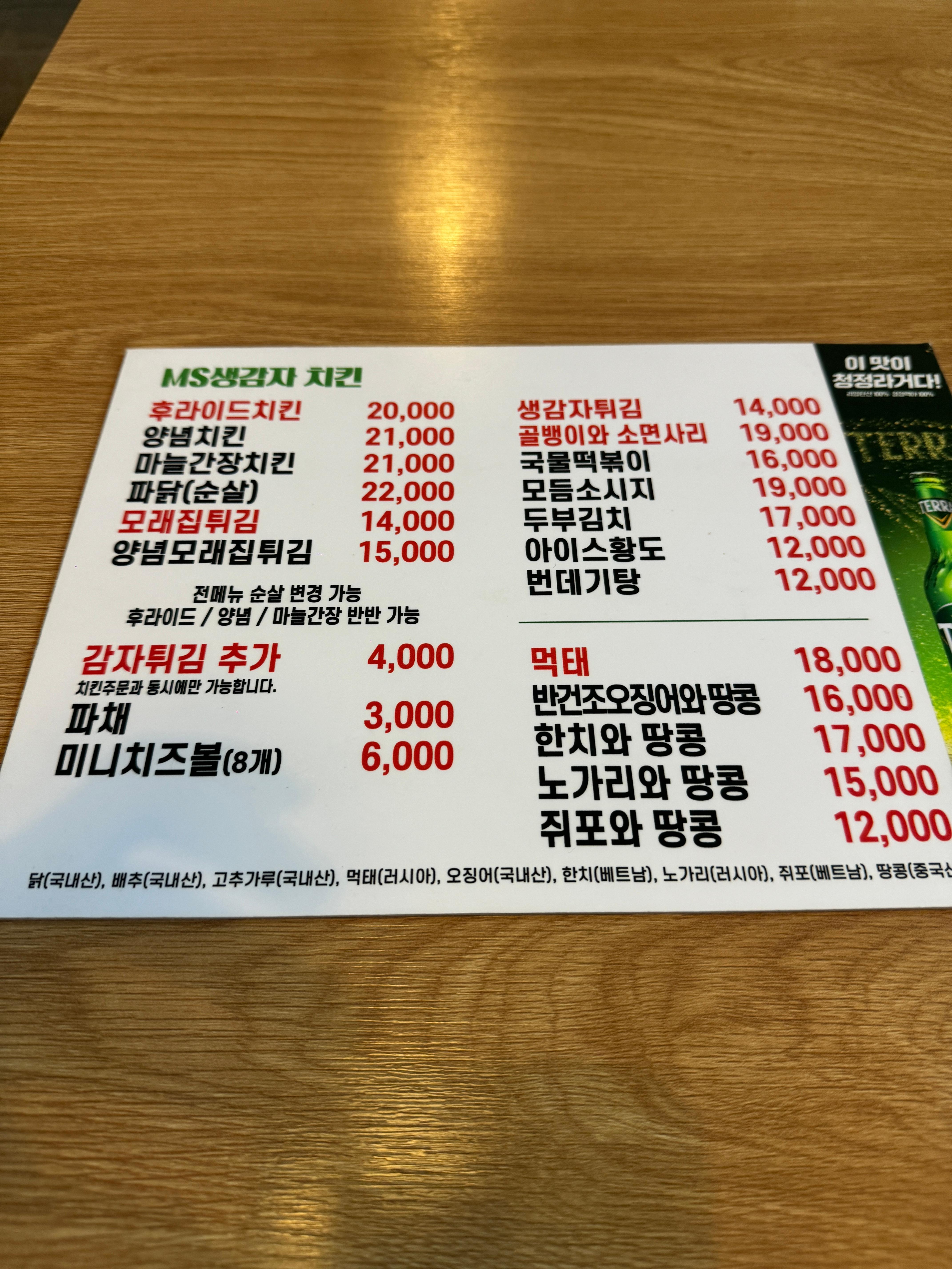 성남 판교 MS생감자치킨 후라이드치킨, 모래집튀김 후기 [24.8.30] 본문